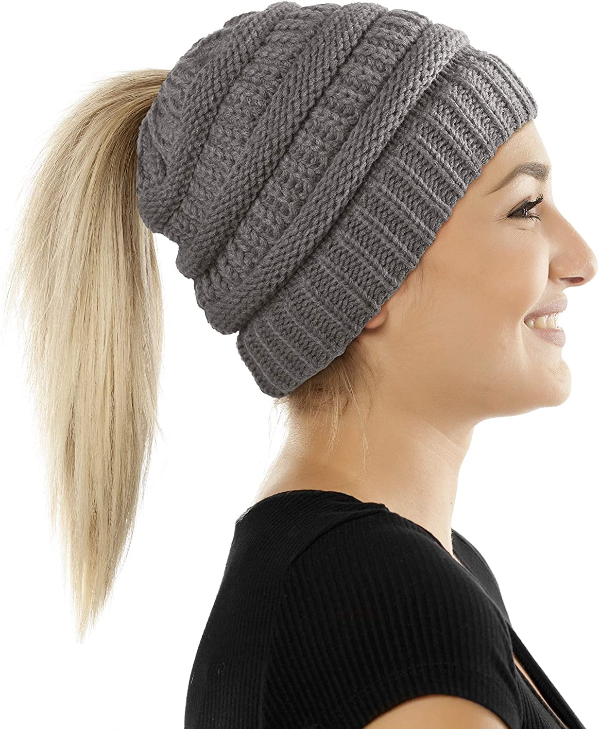Ponytail Beanie Hat For Women Winter Knit Hats With Hole For Messy Buns Ponytails Dark Gray Cc18z7usl3z Beanie Hats For Women Hats For Women Winter Knit Hats